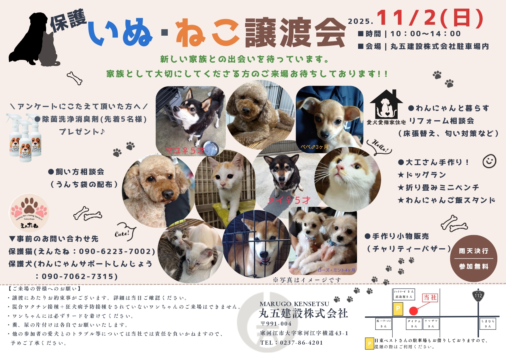 11月2日(日)10:00~14:00に保護犬猫譲渡会を行います🐾